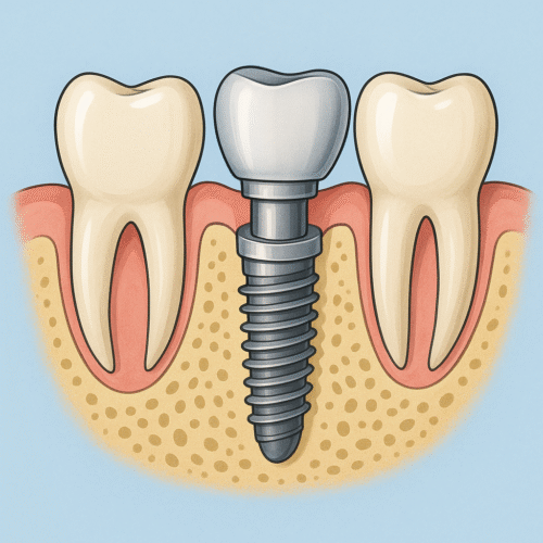 Implantes dentários são peças de titânio em forma de rosca que são inseridas no lugar onde houve a perda de um dente. Essa pequena peça faz a função da raiz do novo dente de cerâmica, que será fixado ao implante por meio de um componente intermediário.