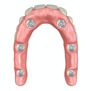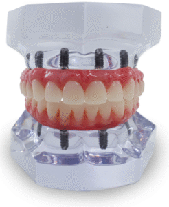 A prótese total sobre implantes, também chamada de “protocolo”, é indicada para pessoas que perderam todos os dentes de uma ou das duas arcadas. Normalmente, são utilizados seis implantes na arcada superior e quatro na inferior — sendo esta última a mais procurada, devido à maior dificuldade de fixação da prótese convencional na parte inferior da boca.